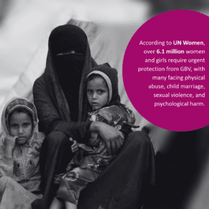 According to UN Women, over 6.1 million women and girls require urgent protection from GBV, with many facing physical abuse, child marriage, sexual violence, and psychological harm. This situation is even more concerning for internally displaced persons (IDP) camps. These camps are overcrowded and under-resourced, and in the words of UN Women, ‘’these camps strip women of their privacy and safety, leaving them vulnerable to harassment, assault, and exploitation.’’