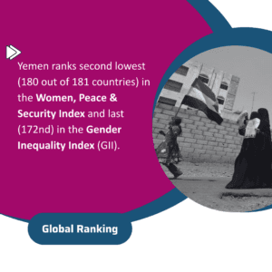 Yemen ranks second lowest (180 out of 181 countries) in the Women, Peace & Security Index and last (172nd) in the Gender Inequality Index (GII). The ranks really do paint the picture of the epidemic of gender-based violence (GBV) against women and girls. As war continues to devastate the nation’s physical and social infrastructure, Yemeni women face increasing risks of exploitation, abuse, and neglect. This silent epidemic has become one of the conflict’s most profound and enduring legacies and earned the title, ‘’A crisis within a crisis.’’